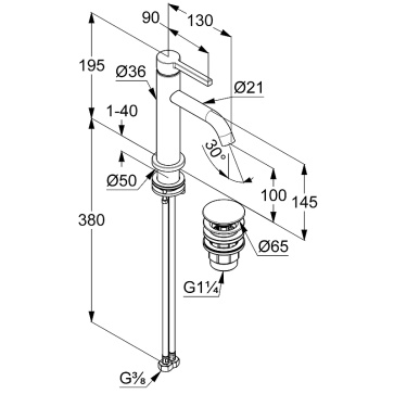 Смеситель для раковины Kludi Nova Fonte Pura с донным клапаном, керамический картридж, черный матовый (202883915)