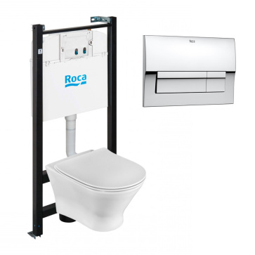 ПЭК Roca FARO: Инсталляция с подвесным унитазом, быстросъемное сиденье микролифт + Кнопка смыва Roca Active В01, хром глянец (Z.RU93.0.761.3)
