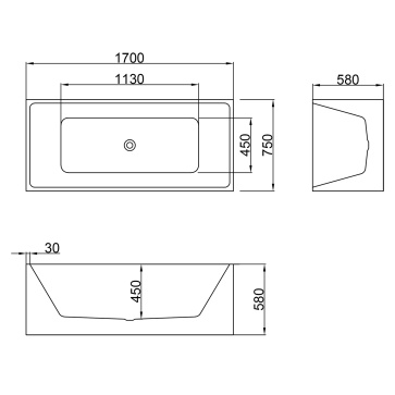 Ванна акриловая Azario MODERN 1700x750x580 отдельностоящая, в комплекте с сифоном и металлической рамой (AZ-6601-17075)