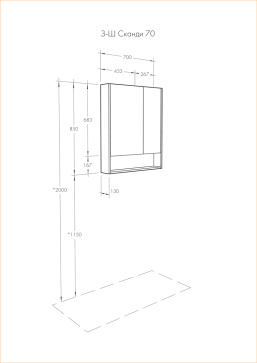 Зеркало-шкаф AQUATON Сканди 70 дуб верона (1A252202SDB20)