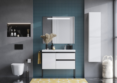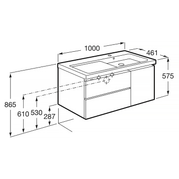 Тумба под раковину Roca DOMI 1000 мм, правая, подвесная, 2 ящика, белый глянец (A857478806)