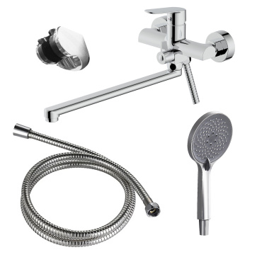 Смеситель для ванны Azario Alanti керамический картридж, длинный излив, с ручным душем, шланг 150 см, хром (AZ-K1732)