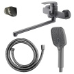 Смеситель для ванны Azario Conda керамический картридж, длинный излив, с ручным душем, шланг 150 см, графит (AZ-K1711GR)