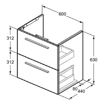 Тумба для раковины Ideal Standard i.Life A 60 см, подвесная, с 2-мя ящиками, белый матовый (T5255DU)
